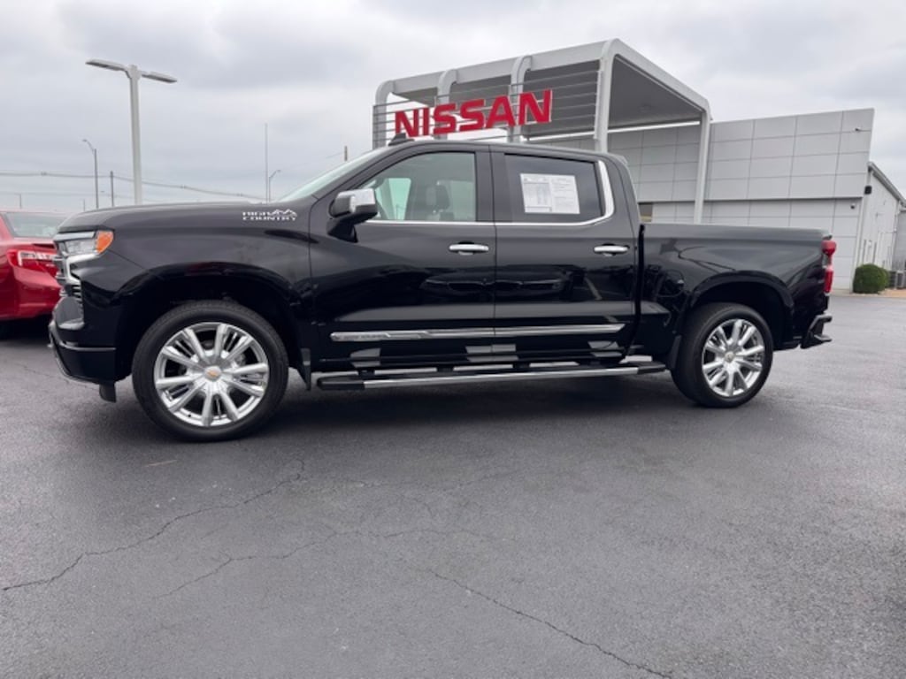 ONE OWNER!, CARFAX ONE OWNER!, COOLED SEATS!, ADAPTIVE CRUISE CONTROL, ADAPTIVE SUSPENSION, APPLE CARPLAY, ANDROID AUTO, BLUETOOTH, BLIND SPOT MONITORING, ALLOY WHEELS, BACKUP CAMERA, COMFORT PACKAGE, CONVENIENCE PACKAGE, HEATED SEATS, LEATHER SEATS, MOONROOF, NAVIGATION SYSTEM, PREMIUM AUDIO PACKAGE, PREMIUM PACKAGE, PREMIUM SOUND PACKAGE, PREMIUM WHEELS, REAR CLIMATE PACKAGE, REMOTE START, SUNROOF/MOONROOF, TECHNOLOGY PACKAGE, TOW PACKAGE, Silverado 1500 High Country, 4D Crew Cab, EcoTec3 6.2L V8, 10-Speed Automatic, 4WD, Black, Jet Black/Umber Leather, 10-Way Power Driver Seat w/Lumbar, 10-Way Power Passenger Seat Adjuster w/Lumbar, 12.3" Multicolor Reconfigurable Digital Display, 120-Volt Bed Mounted Power Outlet, 120-Volt Interior Power Outlet, 15" Diagonal Multicolor Head-Up Display, 2 USB Data Ports, 2nd Row Heated Outboard Seats, ABS brakes, Adaptive Cruise Control, Adaptive Ride Control Suspension, All-Weather Floor Liner (LPO), Alloy wheels, Auto High-beam Headlights, Auto-Dimming Inside Rear-View Mirror, Auto-Locking Rear Differential, Automatic temperature control, Bed View Camera, Bluetooth® For Phone, Body-Color Painted Mirror Caps, Chevrolet Connected Access Capable, Chevytec Spray-On Black Bedliner, Chrome Assist Steps, Chrome Recovery Hooks, Color-Keyed Carpeting Floor Covering, Deep-Tinted Glass, Driver Memory, Dual Exhaust w/Polished Outlets, Dual front side impact airbags, Dual Rear USB Ports (Charge Only), Electric Rear-Window Defogger, Electrical Steering Column Lock, Floor Mounted Center Console, Following Distance Indicator, Forward Collision Alert, Front Carpeted Floor Mats, Front dual zone A/C, Front fog lights, Front LED Fog Lamps, Front Rain-Sensing Wipers, Front wheel independent suspension, Fully automatic headlights, HD Surround Vision, Heated Driver & Front Outboard Passenger Seats, Heated front seats, Heated rear seats, Heated Steering Wheel, Heated steering wheel, High Capacity Suspension Package, High Country Premium Package, Hitch Guidance, Hitch Guidance w/Hitch View, Illuminated entry, In-Vehicle Trailering System App, Integrated Trailer Brake Controller, Keyless Open & Start, LED Cargo Area Lighting, Memory seat, OnStar & Chevrolet Connected Services Capable, Outside Heated Power-Adjustable Mirrors, Perforated Leather Seat Trim, Perimeter Lighting, Power Front Passenger Windows w/Express Up/Down, Power Front Windows w/Driver Express Up/Down, Power Rear Windows w/Express Down, Power Sliding Rear Window w/Rear Defogger, Power Sunroof, Power Tailgate, Power Tilt & Telescoping Steering Column, Preferred Equipment Group 3LZ, Rear Camera Mirror, Rear Carpeted Floor Mats, Rear Cross Traffic Braking, Rear Pedestrian Alert, Rear Wheelhouse Liners, Remote keyless entry, Remote Vehicle Starter System, Safety Alert Seat, SiriusXM w/360L, Standard Tailgate, Steering Wheel Audio Controls, Steering wheel mounted audio controls, Technology Package, Theft Deterrent System (Unauthorized Entry), Trailer Camera Provisions, Trailer Side Blind Zone Alert, Trailering Package, Ultrasonic Front & Rear Park Assist, Universal Home Remote, Up-Level Rear Seat w/Storage Package, Ventilated Driver & Front Passenger Seats, Ventilated front seats, Wheels: 22" x 9" Painted Aluminum, Wi-Fi Hot Spot Capable, Wrapped Steering Wheel. 2024 Chevrolet Silverado 1500 High Country 4D Crew Cab 4WD EcoTec3 6.2L V8 10-Speed Automatic